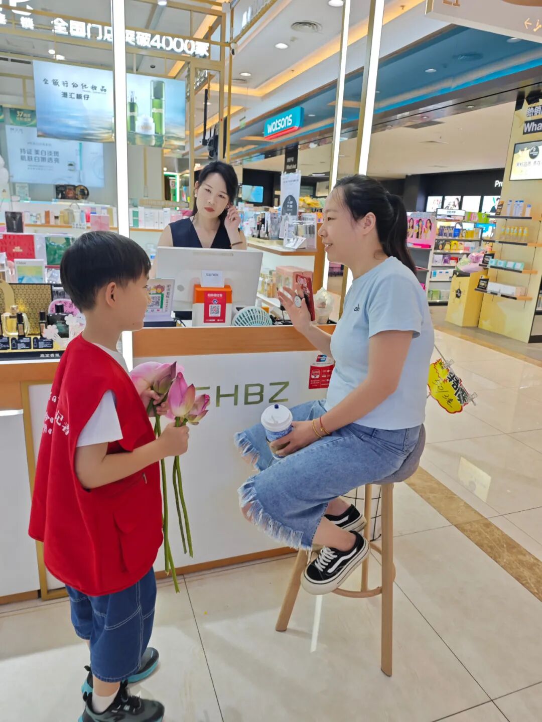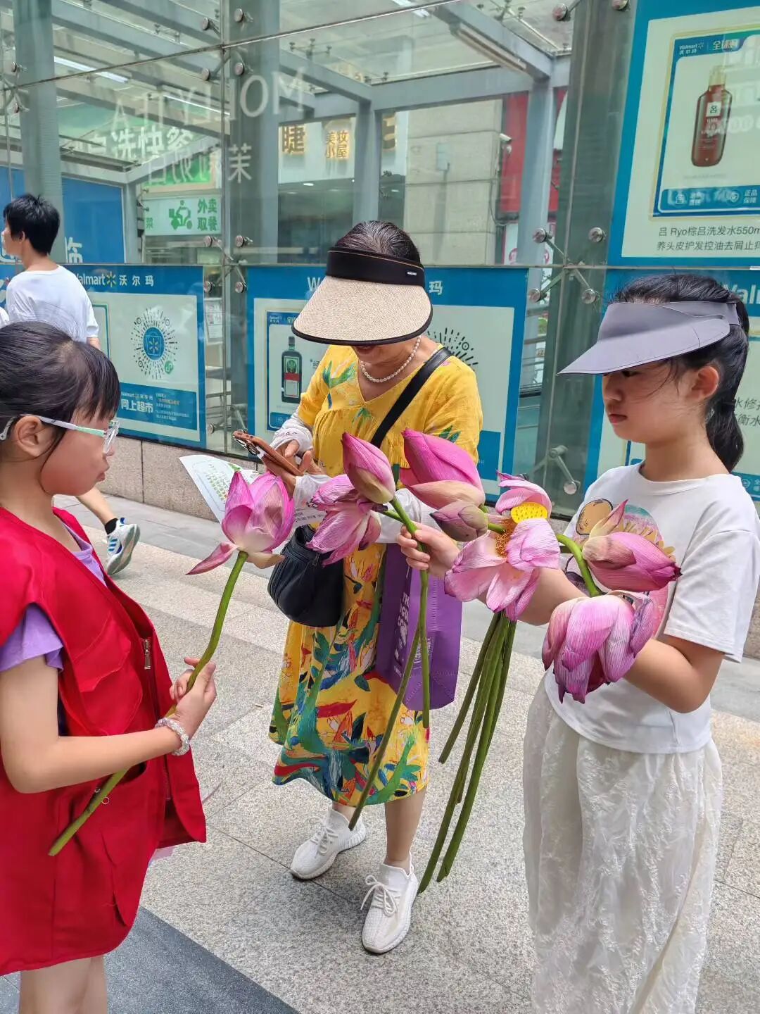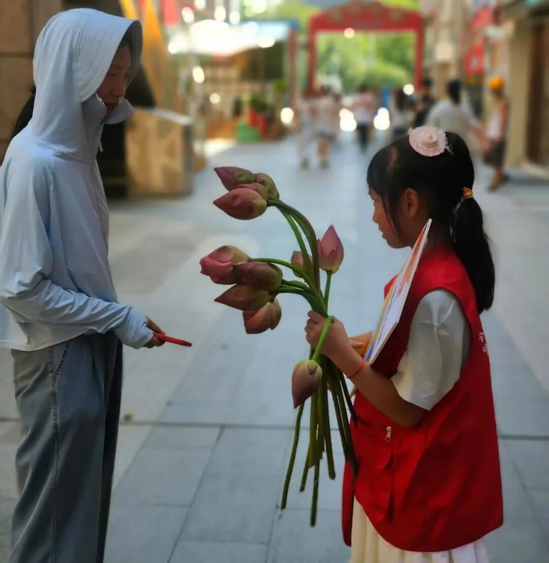 他们手持粉嫩荷花,化身“爱心使者”