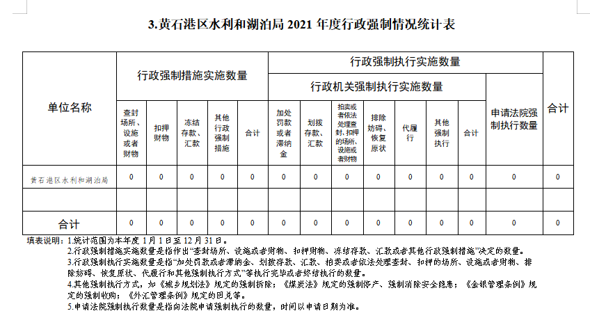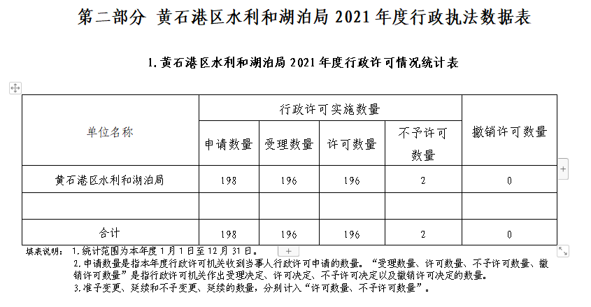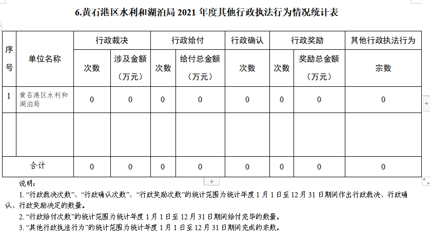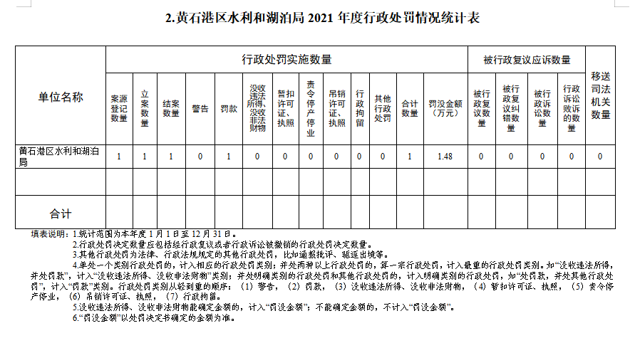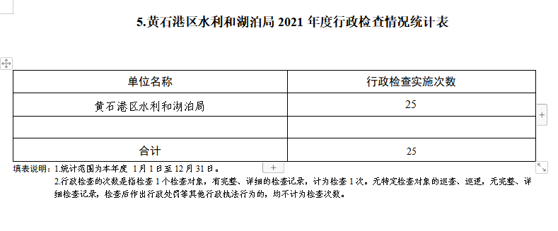 第二部分 黄石港区水利和湖泊局2021年度行政执法数据表