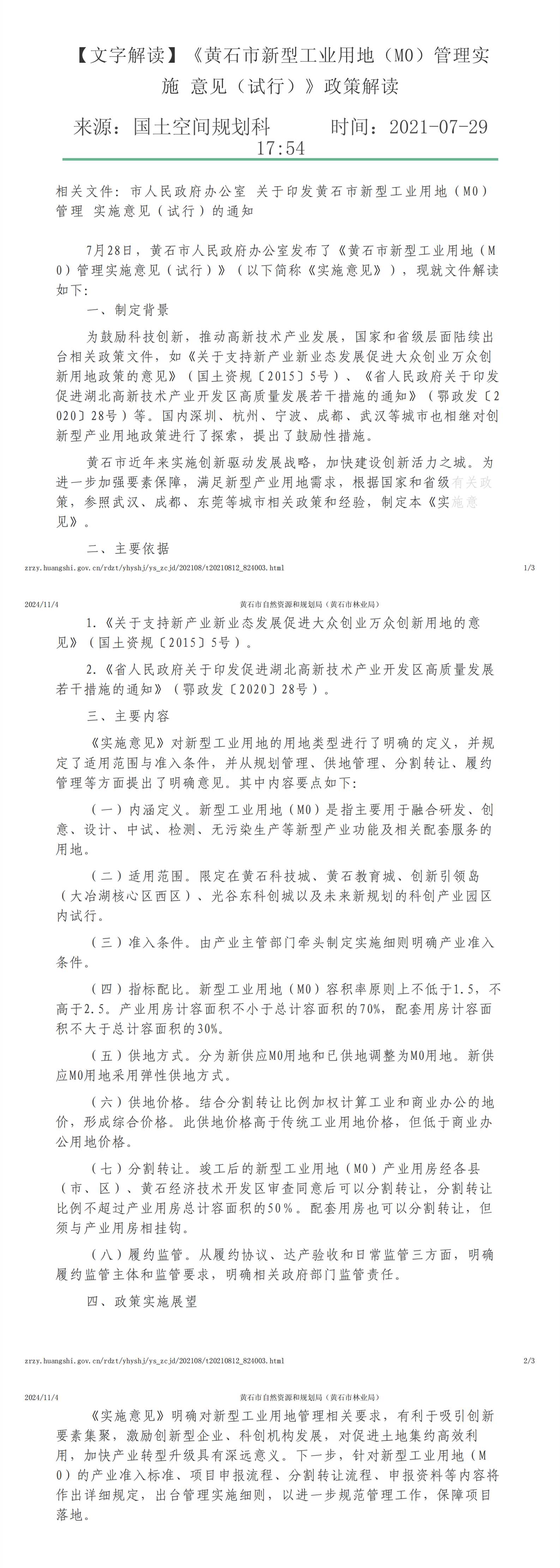 【文字解读】《黄石市新型工业用地(M0)管理实施 意见(试行)》政策解读