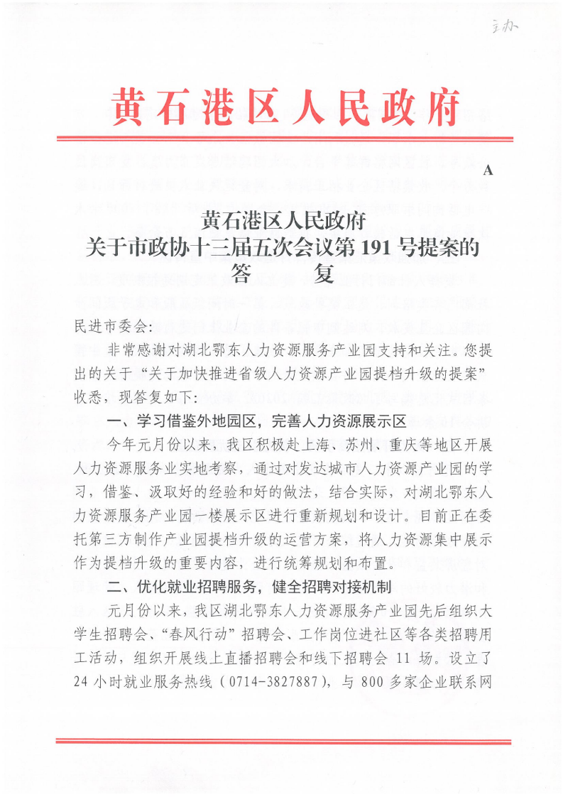 关于市政协第十三届五次会议第191号提案的答复