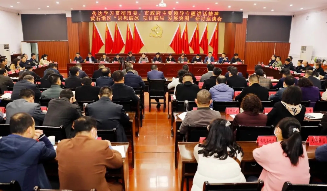 11月28日星期天,黄石港区召开“思想破冰 项目破局 发展突围”专题研讨座谈会。会议传达学习区委区政府向市委汇报工作时市委书记郄英才指示精神,市委副书记、代市长吴之凌到我区现场调研办公讲话精神,并就贯彻落实相关要求作出工作部署。区委书记严荣勇主持会议并讲话。
