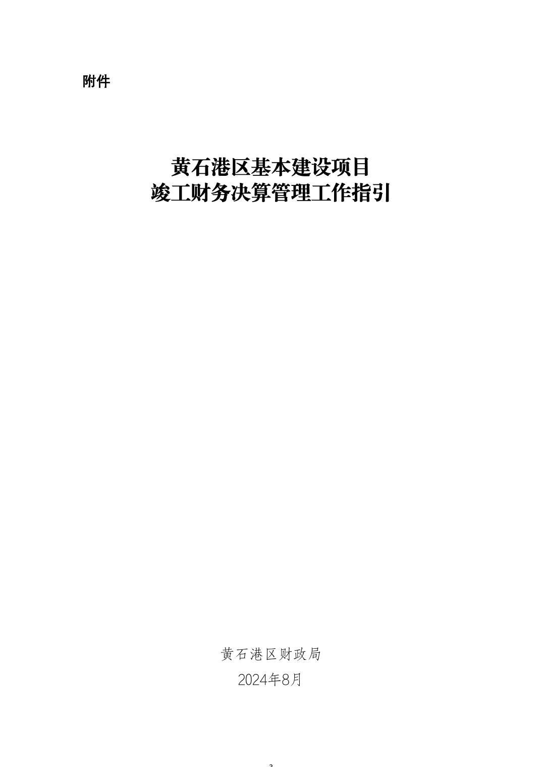 关于印发《黄石港区基本建设项目竣工财务决算管理工作指引》的通知
