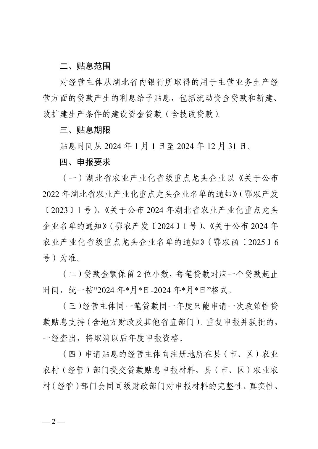 省农业农村厅省财政厅关于做好2025年 新型农业经营主体贷款贴息工作的通知