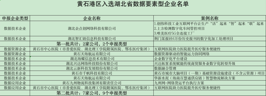 近日,湖北省数据局正式发布湖北省数据要素型企业(第二批)名单,我区共有7家企业入选,涵盖数据资源企业、数据技术企业、数据应用企业等类型。继第一批入选2家企业,累计共有9家企业作为湖北省数据要素型企业予以登记入库,在各县(市、区)中入库企业总数排名第一。