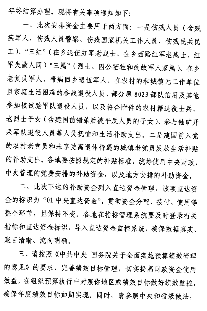 关于提前下达2022年中央优抚对象补助经费的通知