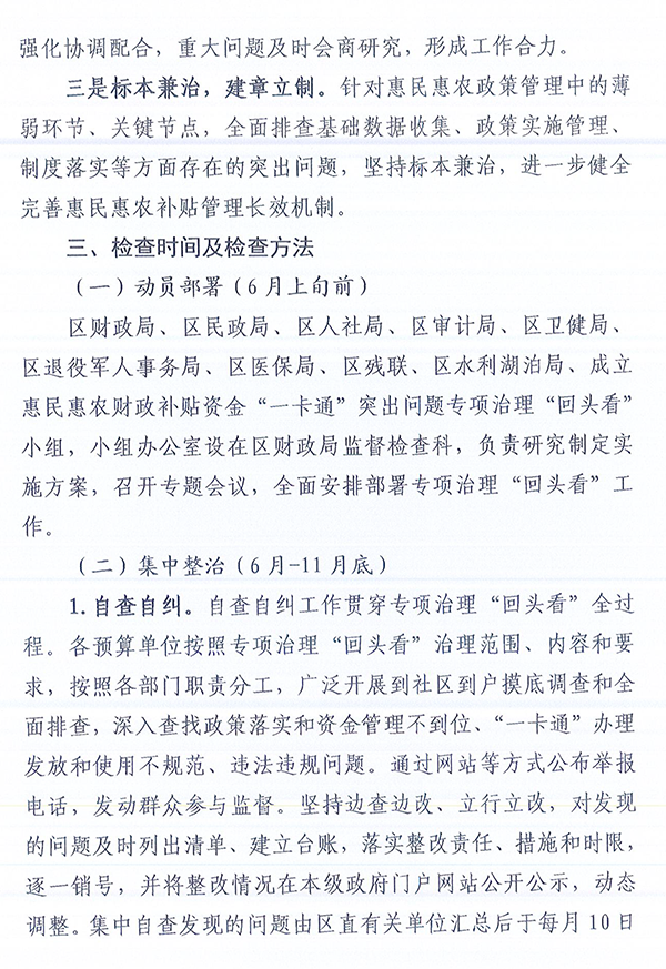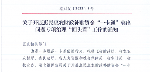 黄石港区关于开展惠民惠农财政补贴资金“一卡通”突出问题专项治理“回头看”工作实施方案