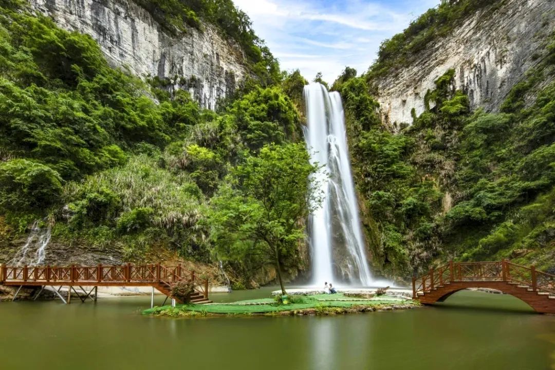 阳新滴水崖瀑布生态旅游风景区推出的吉祥书院项目,建筑采用“四水归堂”风格,融合新中式茶文化与吉文化,让游客在传统文化氛围中感受时尚魅力。