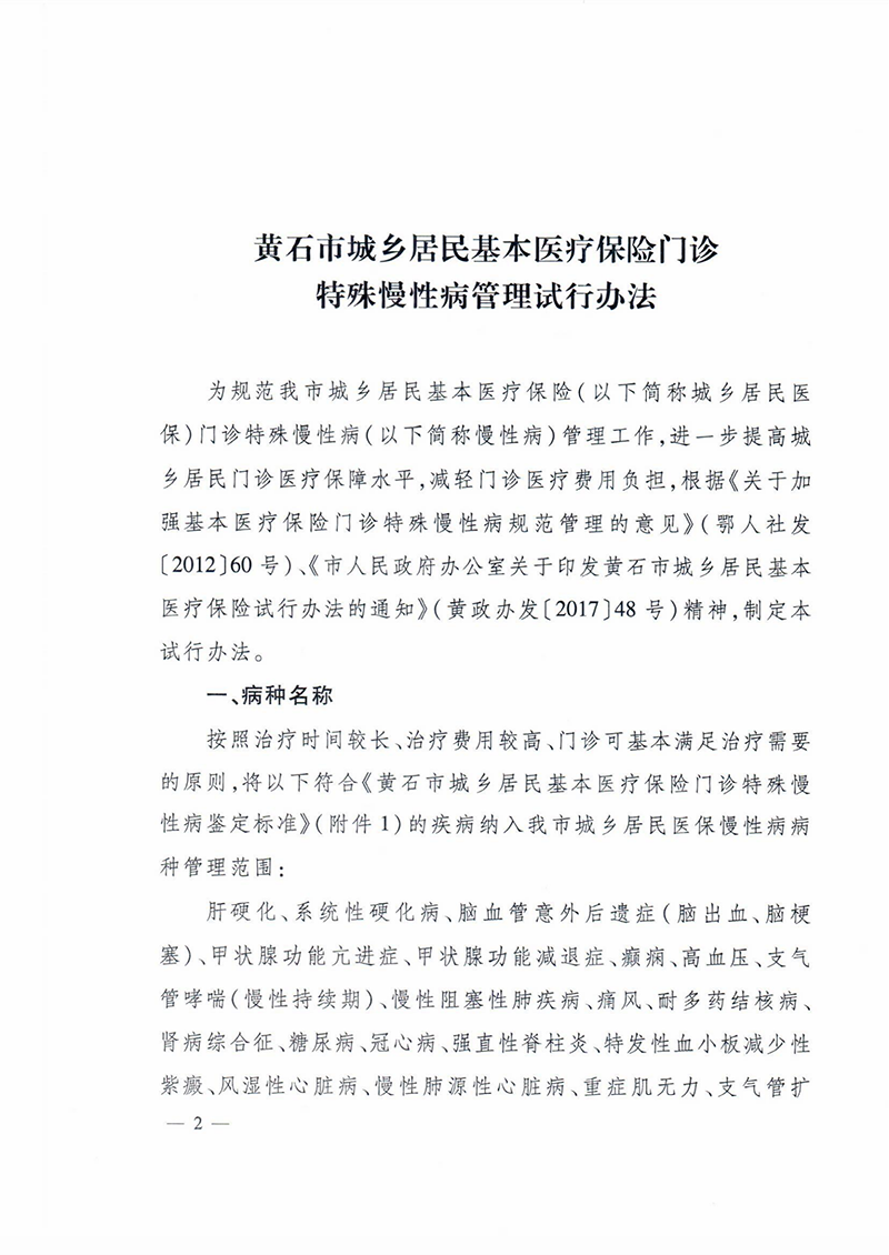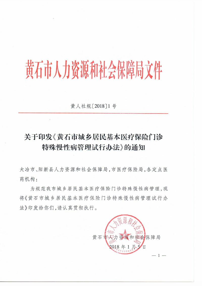 慢性病管理试行办法(黄人社规〔2018〕1号