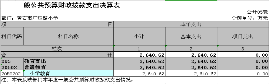 第二部分: 黄石港区广场路小学单位2022年部门决算表