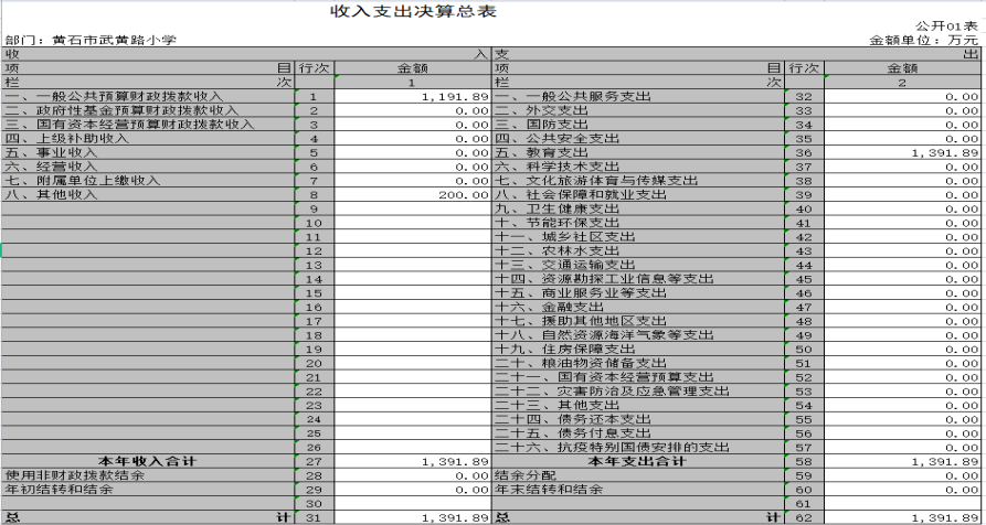 武黄路小学2022年部门决算公开