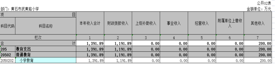 第二部分: 黄石港区武黄路小学2022年部门决算表