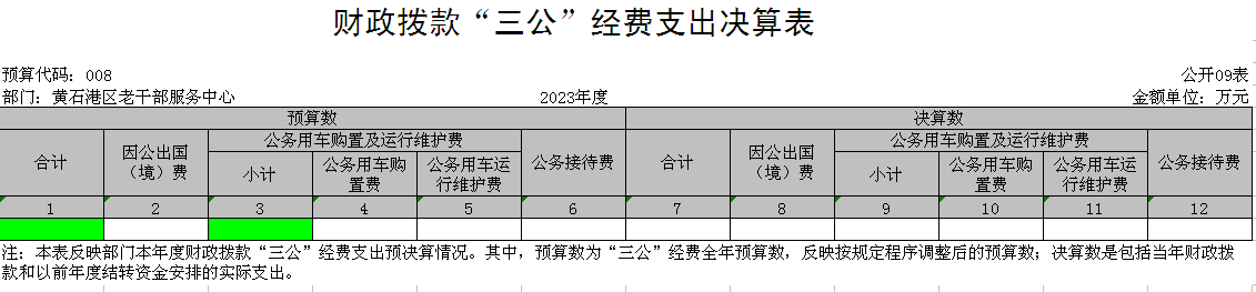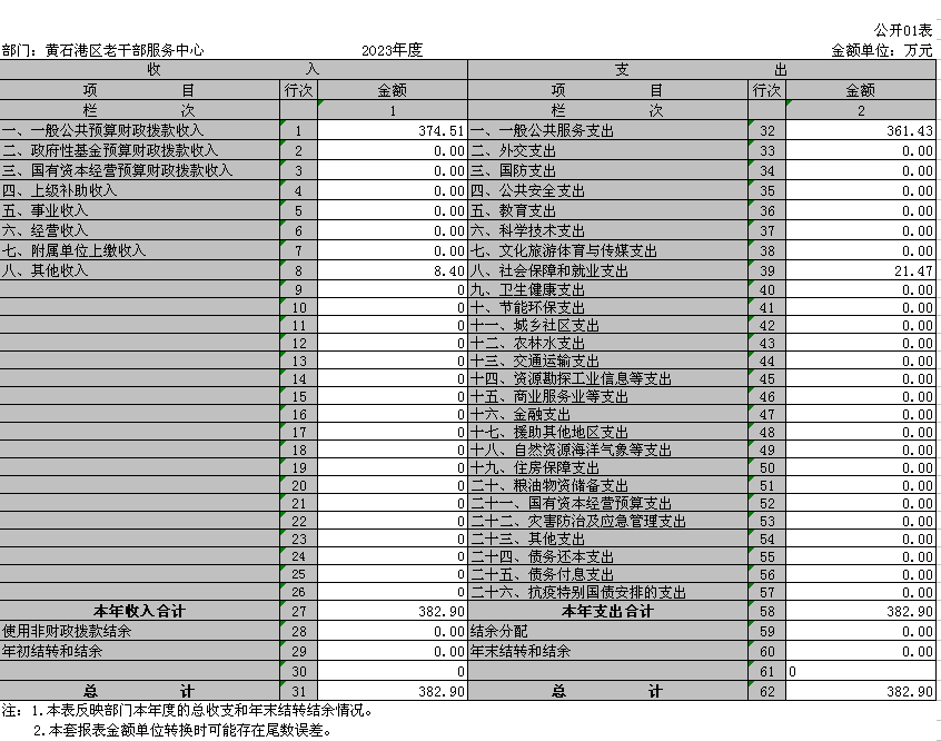 部门:黄石港区老干部服务中心 | 2023年度 | 金额单位:万元 | |||||||