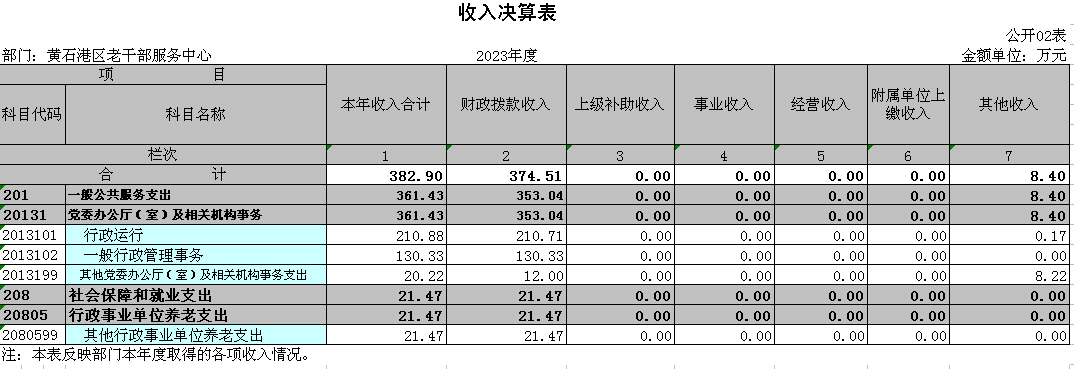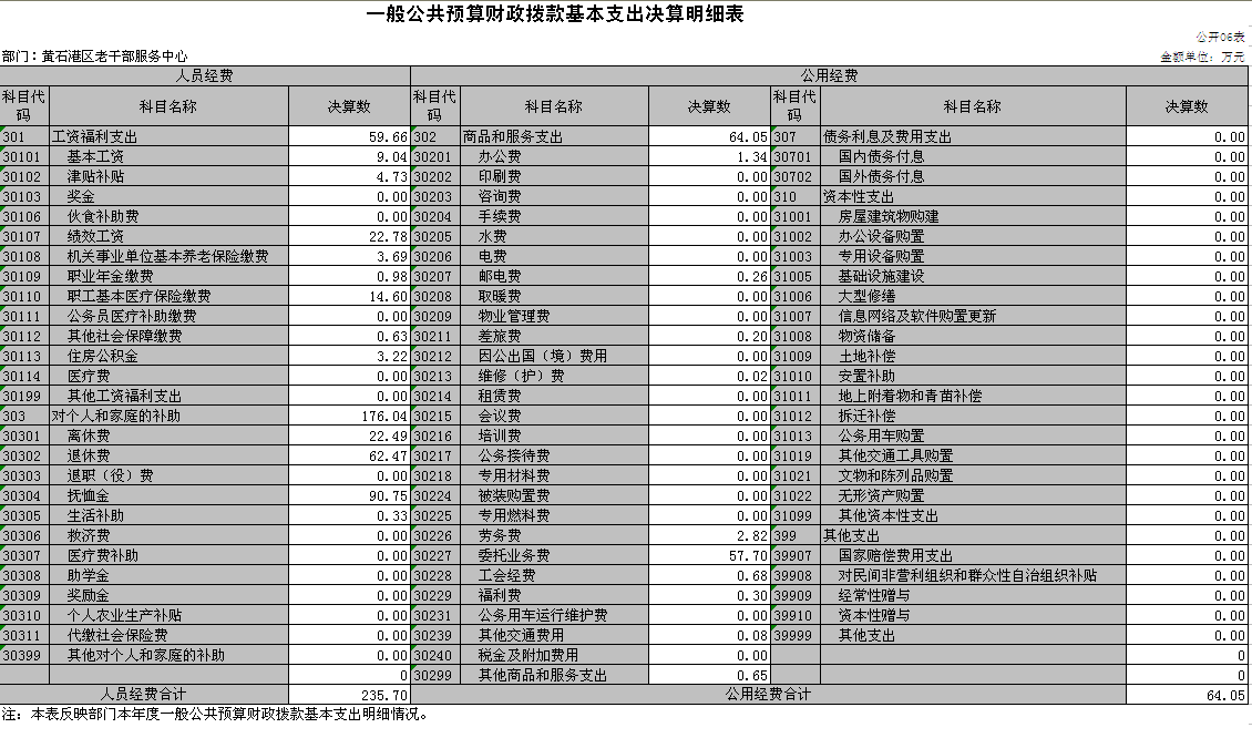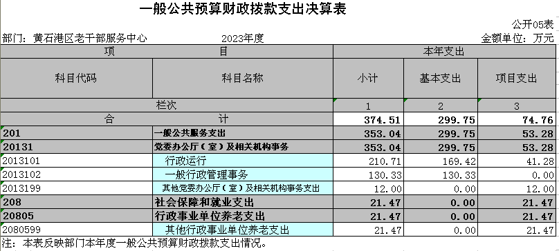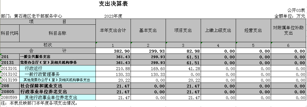 部门:黄石港区老干部服务中心 | 2023年度 | 金额单位:万元 | ||||
