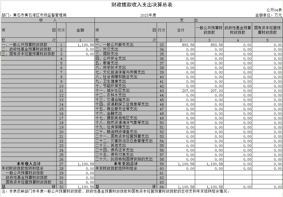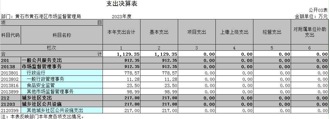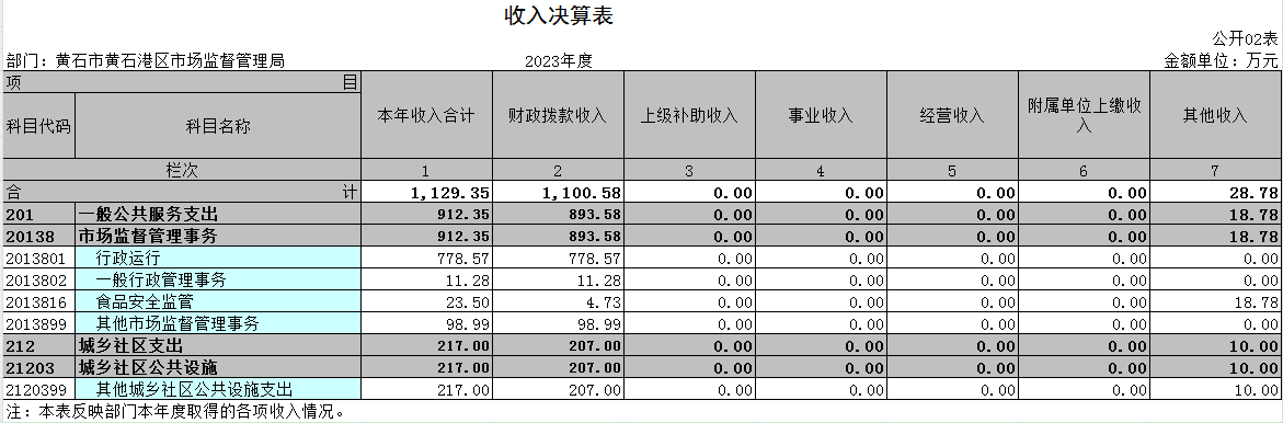 第二部分: 黄石港区市场监督管理局2023年度部门决算表
