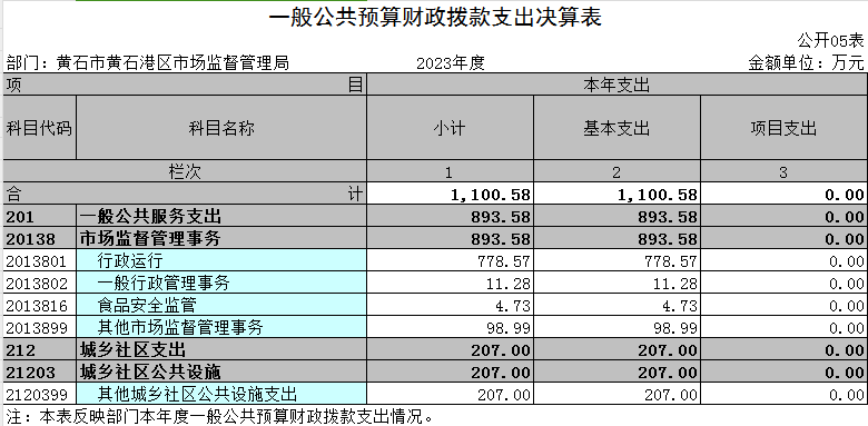 1.一般公共服务(类)市场监督管理事务(款)行政运行(项):反映行政单位(包括实行公务员管理的事业单位)的基本支出。