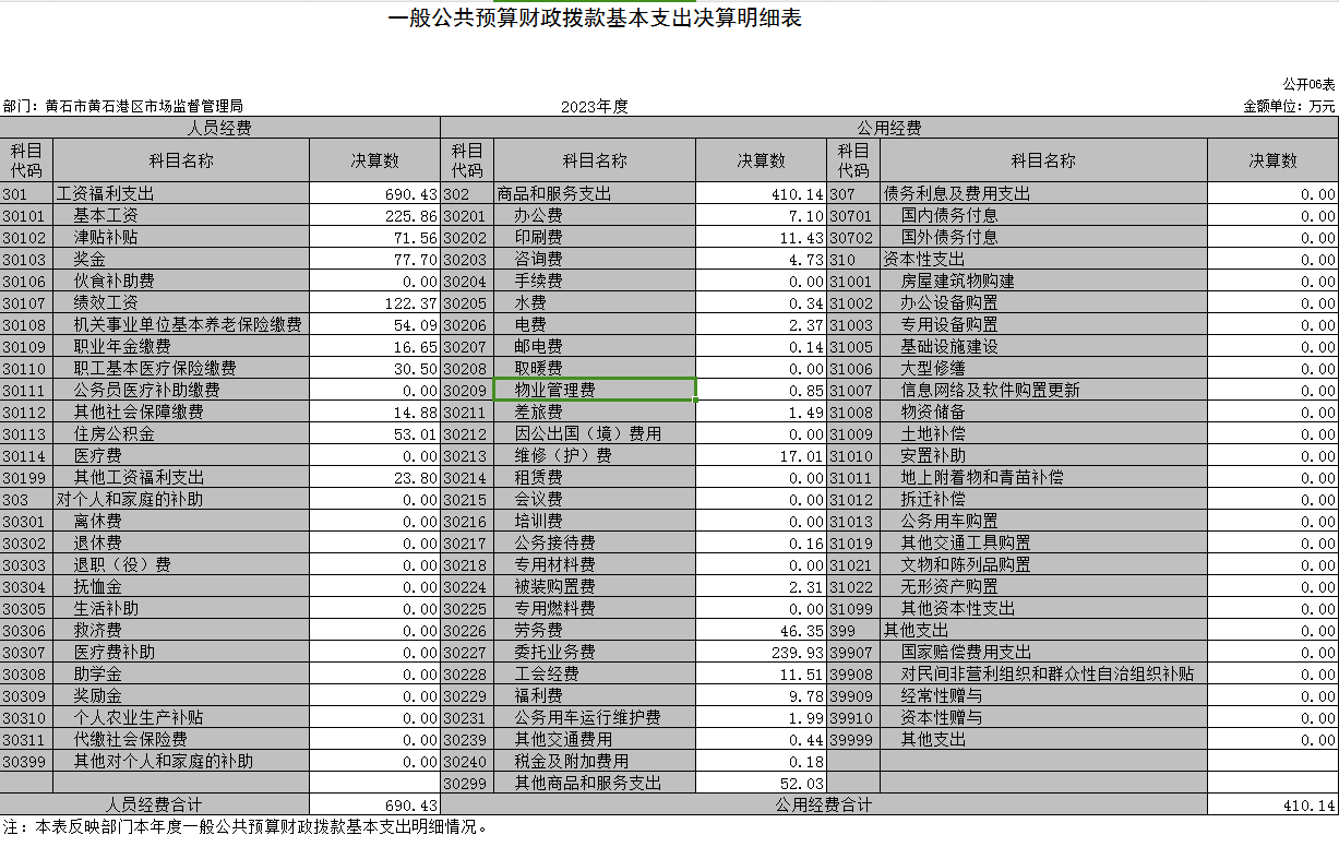 六、一般公共预算财政拨款基本支出决算表(公开06表)