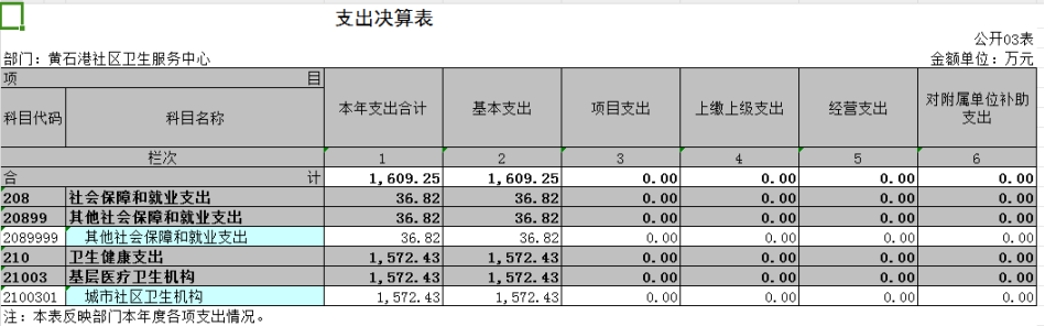 2.卫生健康支出(类)基层医疗卫生机构(款)城市社区卫生机构(项):反映用于城市社区卫生机构的支出。
