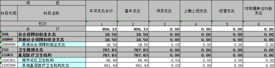 功能分类科目编码 | 科目名称 | 合计 | 基本支出 | 项目支出 | ||