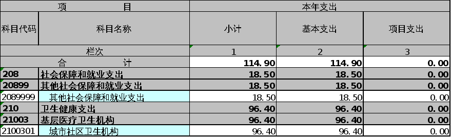 2.卫生健康支出(类)基层医疗卫生机构(款)城市社区卫生机构(项):反映用于城市社区卫生机构的支出。