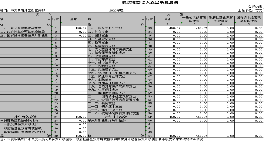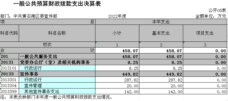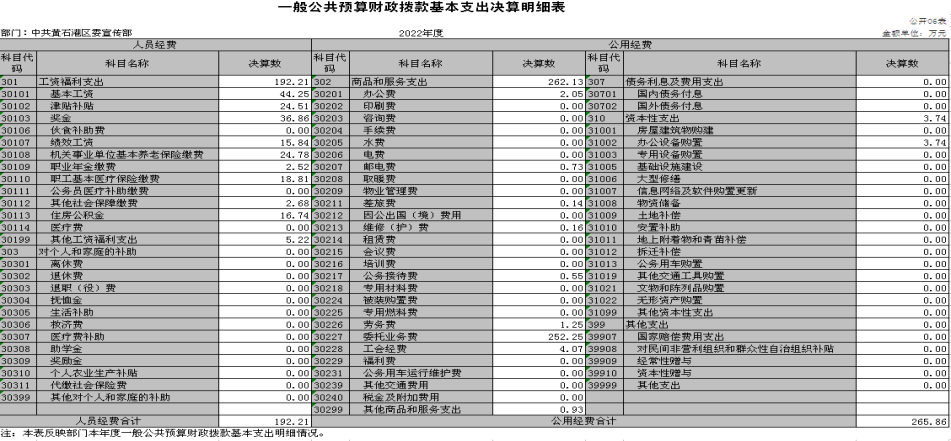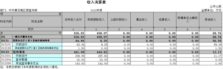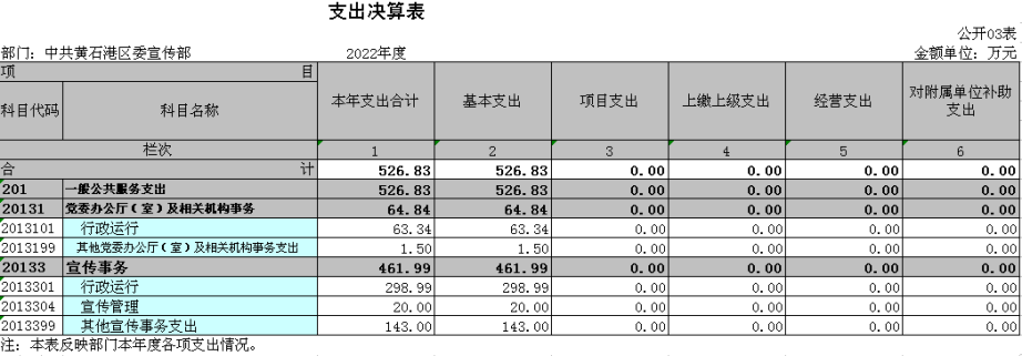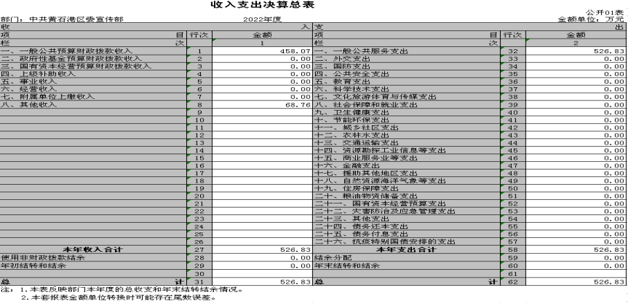第二部分: 黄石港区委宣传部2022年部门决算表