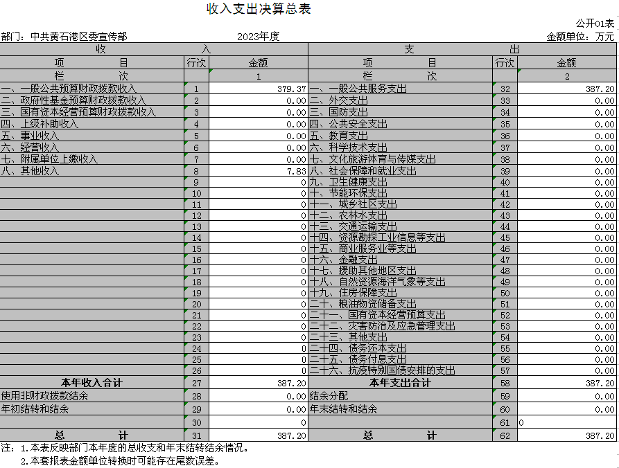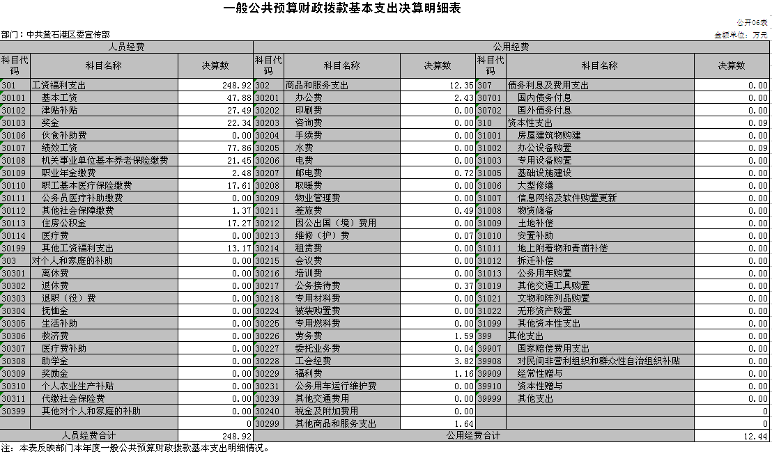 部门:中共黄石港区委宣传部 | 2023年度 | 金额单位:万元 | |||||||