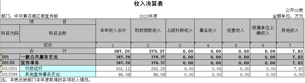 第二部分: 黄石港区委宣传部2023年度部门决算表