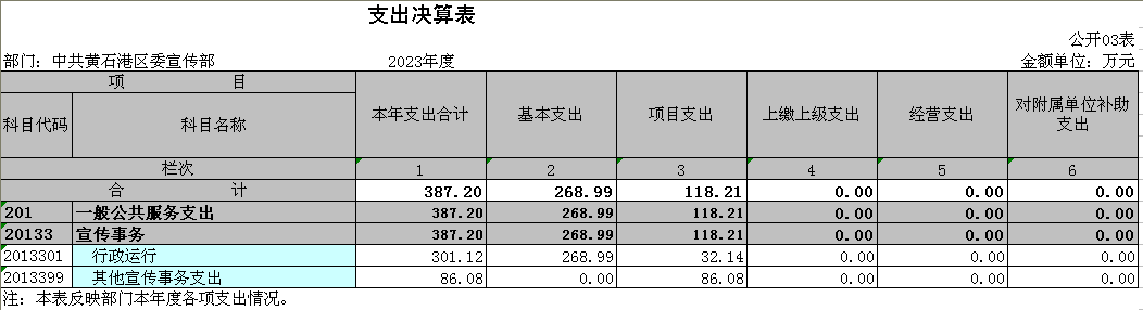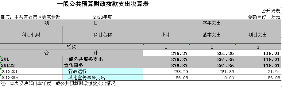 部门:中共黄石港区委宣传部 | 2023年度 | 金额单位:万元 | ||||