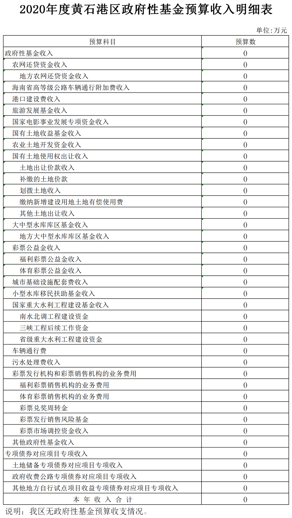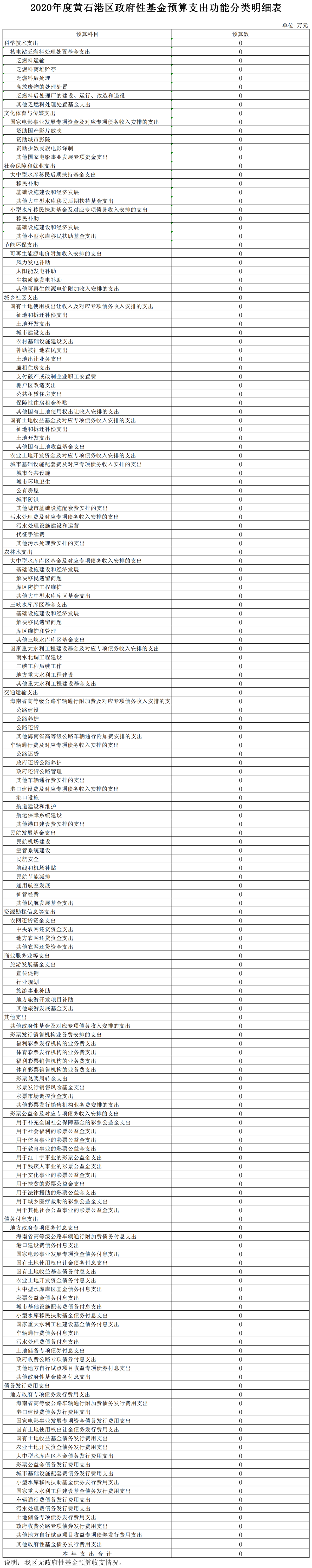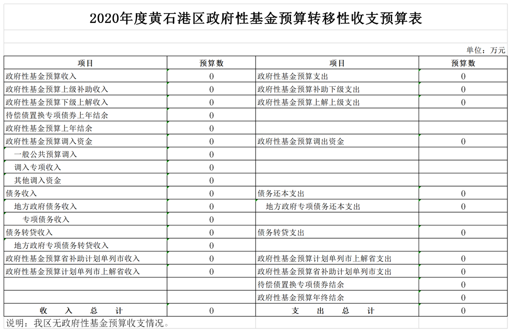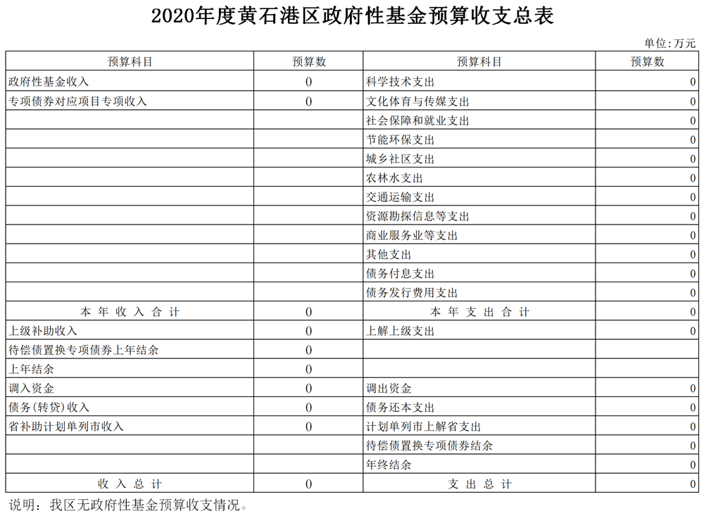 黄石港区2020年政府基金预算表