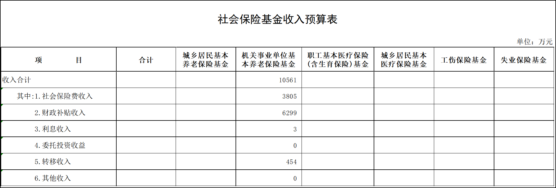 19.社会保险基金预算收入表