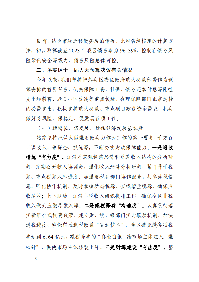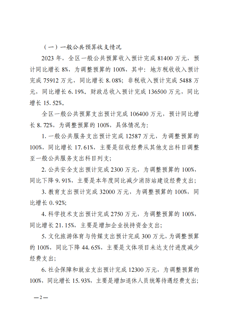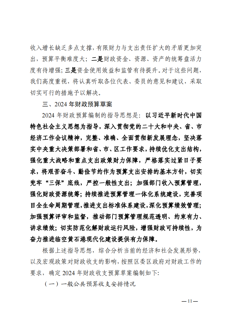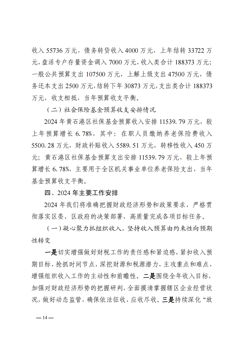 关于黄石港区2023年财政预算执行情况和2024年财政预算草案的报告