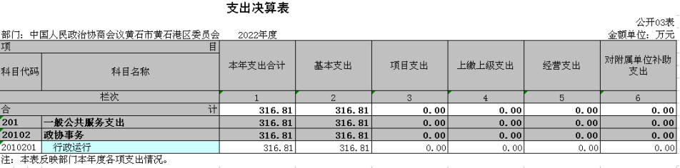 基本支出决算数 | 316.81 | 项目支出决算数 |