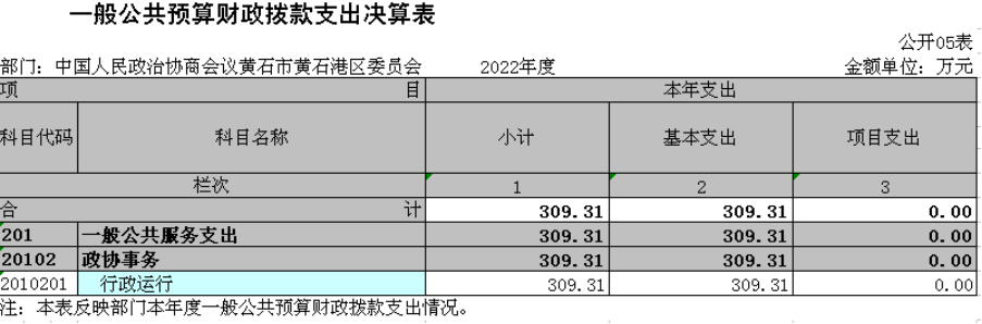 1.一般公共服务(类)支出309.31万元,占100%。主要是用于政协事务。