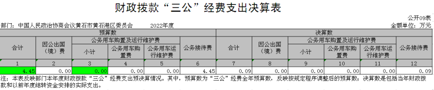 2022年度“三公”经费财政拨款支出预算为4.45万元,支出决算为0.09万元,完成预算的2.02%。较上年减少0.17万元,下降66.35%。决算数小于预算数的主要原因:本年度公务接待事务减少。决算数较上年减少的主要原因:本年度公务接待事务减少。