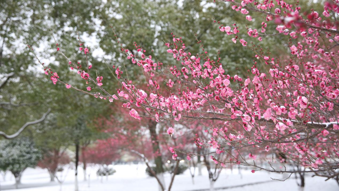 而在昨天,一场温柔飘落的冰雪,为它们换上了另一身衣裳——枝头覆上薄薄银装,花瓣托着晶莹雪粒,红梅愈艳,白梅愈清,暗香在清冽的空气里幽幽浮动,美得不似人间。