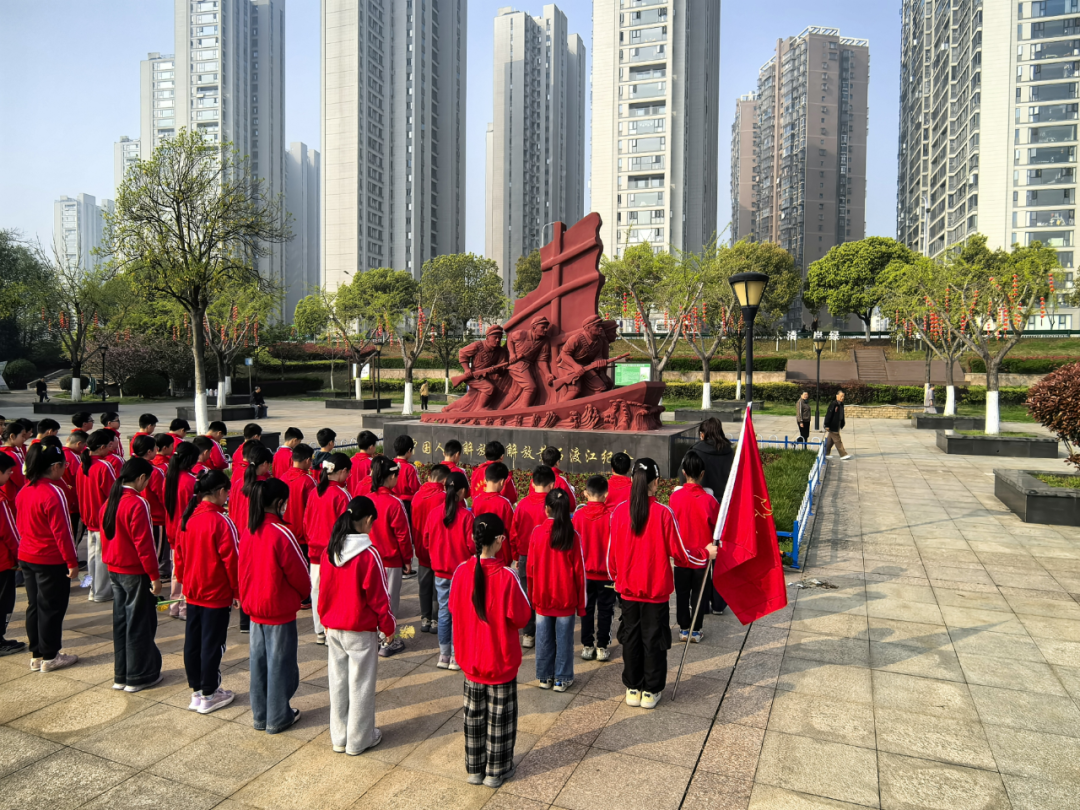 市府路小学少先队员前往渡江战役纪念碑,聆听辅导员讲述峥嵘岁月;磁湖中学、沈家营小学师生徒步皇姑岭烈士陵园,敬献鲜花、重温誓词;中英文学校、英才学校通过故事分享、红领巾广播等形式,让英烈事迹入脑入心;花湖小学、武黄路小学以“党带团、团带队”形式,将思政课堂搬到红色现场;老虎头小学走进“红军楼”,在文物前聆听英雄故事;广场路小学以情景剧再现革命岁月,传递对英烈的崇敬与缅怀。