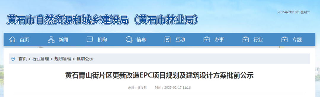 黄石青山街片区更新改造EPC项目,位于湖北省黄石市师院路以北、青山路以西。经黄石城市更新产业发展集团有限公司申请,我局拟审批该项目规划及建筑设计方案。根据《中华人民共和国城乡规划法》和《关于城乡规划公开公示的规定》(建规〔2013〕166号)等有关规定,现将该方案予以公示。