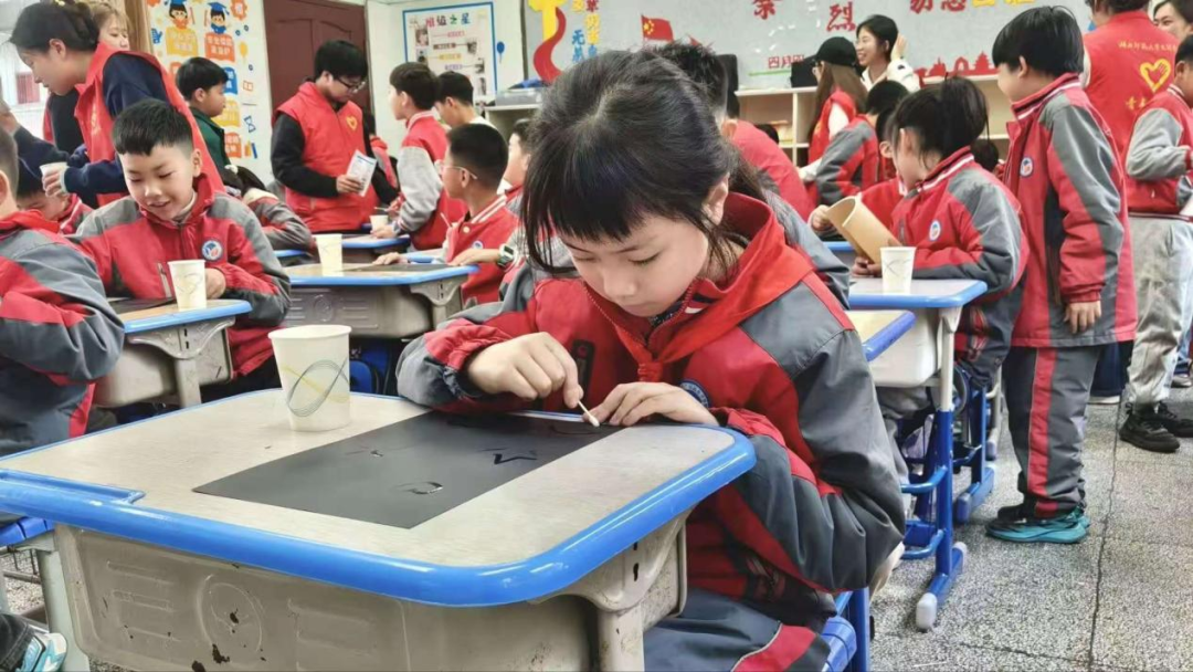 3月27日,文化宫社区联合湖北师范大学文理学院志愿者,走进黄石市英才小学,开展“童心探科学,科普筑未来”主题活动。“盐水魔法画”“液体张力”等趣味实验让孩子们亲手操作、亲眼见证,在惊呼与欢笑中理解科学原理。志愿者用“玩中学、学中悟”的方式,让抽象知识变得触手可及,在孩子们心中播下科学的种子。