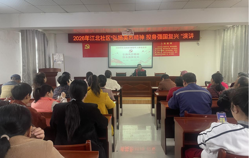 3月26日,江北社区退役军人服务站举办“弘扬英雄精神 投身强国复兴”主题宣讲。退役军人孔凡艳用朴实语言回顾军旅峥嵘岁月,讲述战场上的坚守与奉献。一个个真实故事深深打动了在场听众,大家表示要传承英雄精神,立足岗位、奋勇争先,为社区建设贡献力量。