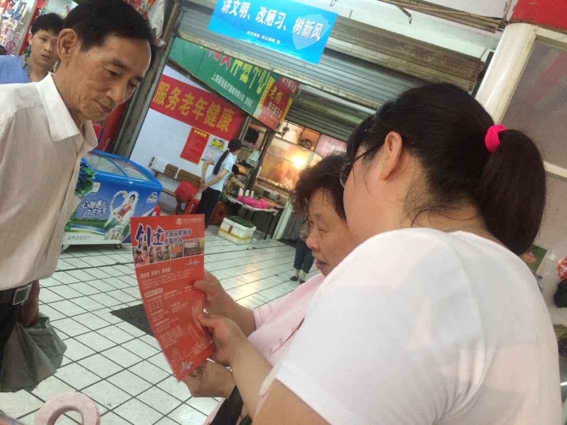 为了辖区各行各业人士能积极地参与到创建文明城市活动中来,让社区所有居民都成为双创活动的“主角”,红旗桥社区于6月2日上午开展了社区干部走进社区企业单位、富豪菜场、沿街商户,居民小区向他们发放“创建全国文明城市、创建幸福社区”宣传折页让他们都了解双创工作,知晓双创内容,从日常生活中说文明话、办文明事、做文明人,以文明影响他人,在生活中提升素养、奉献社会,在全社会形成科学、文明、健康的新风尚。各界人士也表示会用行动支持此项活动,从现在做起、从身边做起参与到双创活动中来。通过这次宣传活动,提升了社区居民对创建全国文明城市、创建幸福社区的知晓度,使更多领域的人们都参与到双创工作中来,大家携手共同建设我们的美好家园。