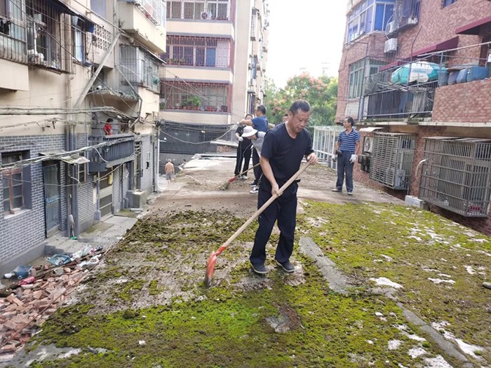 尹天维带领人大机关干部清理沈家营街道南岳社区空中垃圾