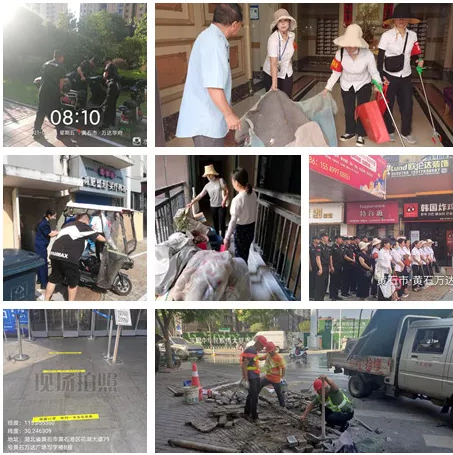 万达社区修补路面破损、规范停车、清理楼道乱堆乱放、组织消防协理员整治飞线充电、为万达商场设置一米线标识等。