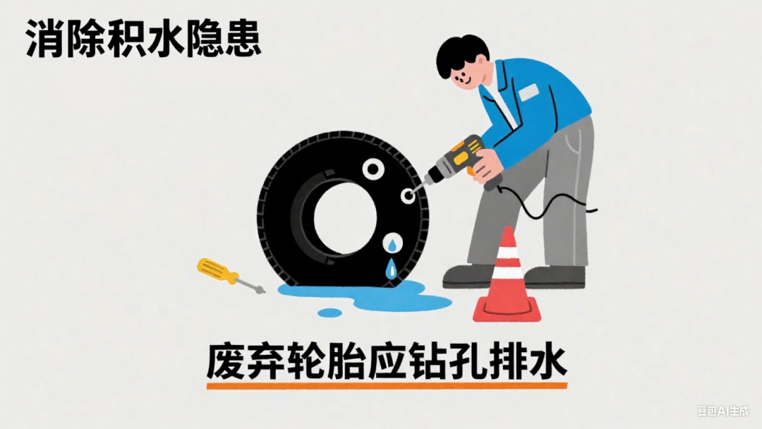 重点关注绿化带、公共停车场、垃圾或杂物堆放点、废弃轮胎、市政管网的管道井、集水井、排水沟、楼梯间、楼房反墚及雨水沟、建筑物凹陷处等,主要采取清理卫生死角、翻盆倒罐、疏通和清除淤积、沙土填埋、投放灭蚊幼剂等方式,废弃轮胎应钻孔排水或填埋,露天堆放的物品需用防雨布遮盖。