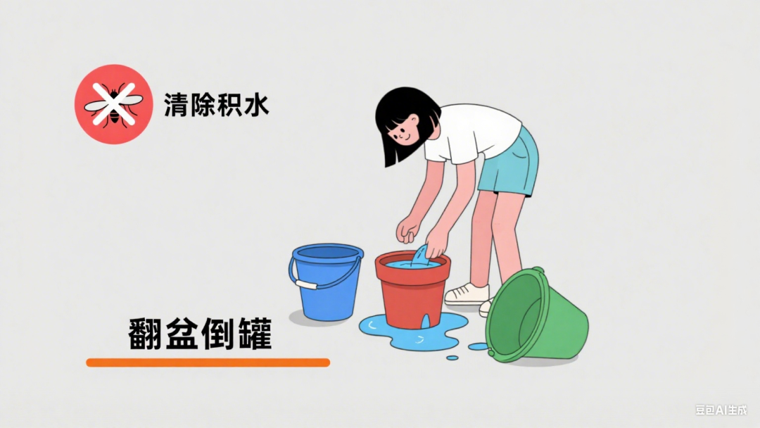 伊蚊在水中产卵,积水容器如花盆、瓶盖、废旧轮胎等都是伊蚊产卵的理想环境,通过“翻盆倒罐”可以有效清理这些潜在的积水点,降低蚊媒密度,从而切断基孔肯雅热的传播途径。