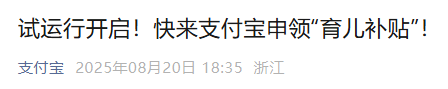 此前未订阅申领通知的用户,现在仍可上支付宝,搜“育儿补贴”,进入国家卫健委“育儿补贴”支付宝小程序,订阅申领通知,重要消息不错过。