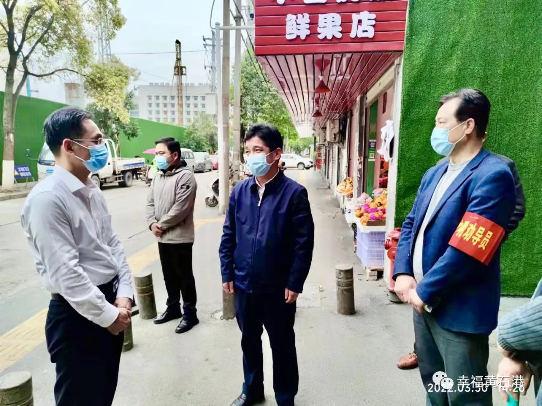 严荣勇一行先后到黄石港街道纺织五路农贸市场、花湖街道天虹小区、胜阳港街道文化宫社区、区新时代文明实践中心、有轨电车磁湖路沿线、沈家营街道师院社区等处,现场指导解决有关问题。