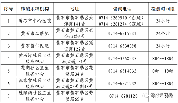 黄石港区核酸检测点最新公布!