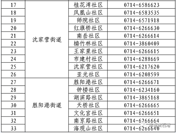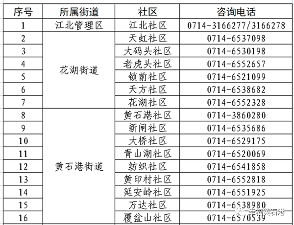 黄石港区33个社区咨询电话
