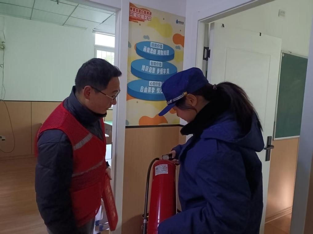 当天,指导小组重点检查了校外培训、托管机构的消防疏散通道与安全出口是否畅通无阻,灭火器、应急照明灯、疏散指示标志是否配置齐全并保持完好有效,厨房燃气三件套是否配备到位,以及工作人员能否正确使用灭火器具等。针对排查出的安全隐患,当即采取措施进行整改。