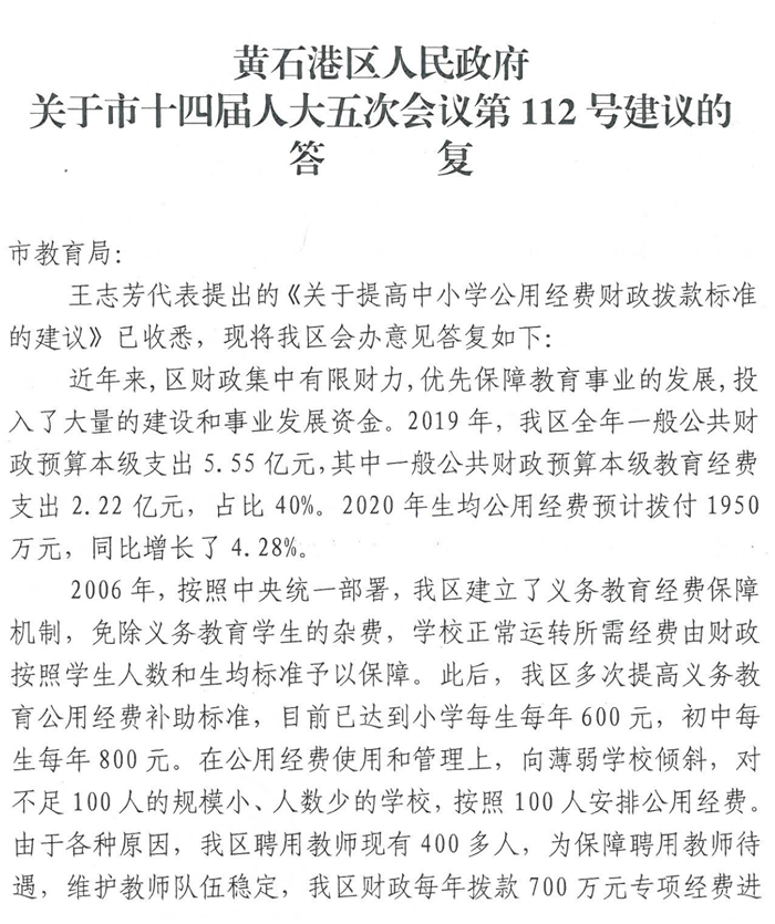 关于市十四届人大五次会议第112号建议的答复
