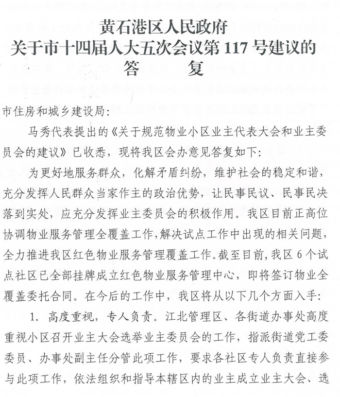 关于市十四届人大五次会议第117号建议的答复